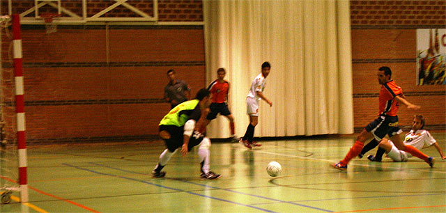 El partido lo comenzó el cuadro de Javier Jiménez, con el cinco formado por Juan Luis, Abel, Alonso, Francis y Esteban, viéndose desde el primer minuto el respeto que se tenían ambas escuadras, demostrando también el por qué están en la parte alta de la clasificación, con un saber estar en el campo que le hacía a su rival no tener las cosas muy fácil que digamos. Entre tanto se veían jugadas de mucha calidad, como por ejemplo una excelente triangulación entre Muleño y Fran Guzmán al saque de una falta que por poco no acaba dentro de la portería visitante, tras la cual Patri se quedaba solo ante Juan Luis, no pudiendo anotar gracias a la valentía del portero que dejó sin ángulo de tiro al rival. Fue a sólo dos minutos del final, cuando en una brillante combinación entre Alonso y Abel, el balón llegaba a Esteban que de fuerte disparo anotaba el 1-0, con el que se llegaba al descanso.