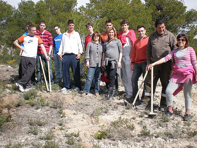 La Concejalía de Medio Ambiente del Ayuntamiento de Caravaca, en colaboración con la Dirección General de Patrimonio Natural y Biodiversidad, ha celebrado el Día Mundial del Árbol con una actividad de reforestación en el paraje Loma del Arca. El Ayuntamiento ha contado por segundo año consecutivo con la colaboración de un grupo profesores y alumnos de la Escuela Comarcal de Alumnos, quienes llevaron a cabo la plantación de cuarenta pinos siguiendo las instrucciones de los agentes forestales y los técnicos de la concejalía. La responsable Medio Ambiente en el Ayuntamiento de Caravaca, Antonia Mª Álvarez, también participó en la actividad.