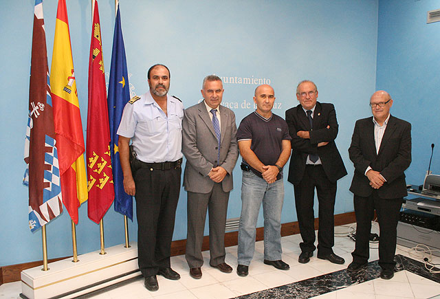 El alcalde de Caravaca, Domingo Aranda, y el director general de Administración Local, Juan Antonio Morales, han agradecido hoy la labor realizada por dos agentes de la Policía Local que sufrieron agresiones cuando trataban de identificar a cinco individuos en la madrugada del pasado sábado. De esta forma, Aranda y Morales han felicitado a los policías por la actuación llevada a cabo y por la labor que realizan cada día, junto con la Guardia Civil, para garantizar la seguridad y la convivencia entre los vecinos del municipio. En la reunión mantenida esta mañana también han estado presentes el concejal de Seguridad Ciudadana, Amador López, y el sargento de la Policía Local, José Antonio Caro.