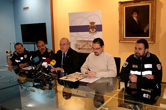 El alcalde, Domingo Aranda, ha ofrecido hoy una rueda de prensa para informar del dispositivo especial seguridad diseñado para el próximo domingo, 10 de enero, con motivo de la Apertura del Año Santo 2010. En la comparencia, Aranda ha estado acompañado por el concejal de Turismo, Gonzalo López-Augüy; el sargento de la Policía Local, José Antonio Caro, y el presidente de la Asociación de Protección Civil de Caravaca, Pedro Antonio Muñoz, quienes han detallado diversas medidas relacionadas con seguridad y la atención turística que estarán en marcha durante todo el año.