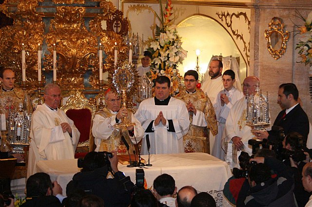 Esta mañana se celebraba la Solemne Apertura Año Santo 2010 con una ceremonia presidida por el cardenal Antonio María Rouco Varela, arzobispo de Madrid y presidente de la Conferencia Episcopal Española y concelebrada por el Arzobispo de Zaragoza, D. Manuel Ureña Pastor, el Obispo de Cartagena D. José Manuel Lorca Planes, el Obispo Emérito de Cartagena D. Javier Azagra y el Obispo de Albacete D. Ciriaco Benavente. La misa de apertura ha tenido lugar a las 10.30 horas en la explanada de la Basílica-Santuario de la Vera Cruz. A las 8:30 horas las autoridades se concentraban en la plaza del Arco para dirigirse a Convento de las Madres Claras donde recogían una Bandeja de Flores y otra con Purificaciones para ofrecerlas a la Santísima y Vera Cruz durante la Eucaristía. Antes de la subida al Castillo, se procedía también a la apertura del Libro del Peregrino en la parroquia de El Salvador.