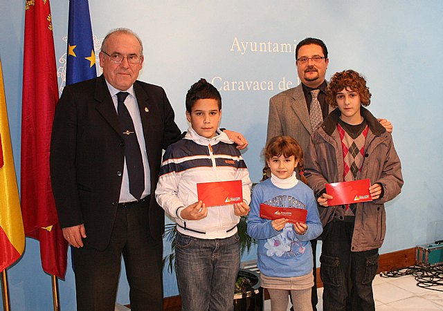 Los ganadores fueron Paloma Navarro Verdejo (8 años, alumna del colegio Basilio Sáez), Toni Fernández Celdrán (10 años, alumno del colegio Cervantes) y Pablo García Martínez (13 años, caravaqueño residente en La Alberca), que recibieron como premio un viaje para ellos y dos adultos durante un fin de semana a Benidorm y entradas al parque temático Terra Mítica.