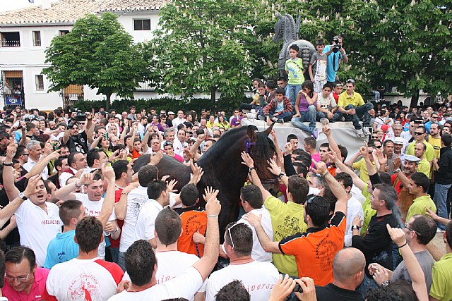 El momento más emotivo se vivía cuando el Caballo del Silencio hacia su entrada en una abarrotada plaza del Hoyo y los caballistas tras guardar unos momentos de silencio rompieron en aplausos y lágrimas dedicadas a dos veteranos caballistas fallecidos este año. Arturo y Esteban fueron recordados por los caravaqueños por su imparte aportación a lo largo de su vida al festejo de los Caballos del Vino.