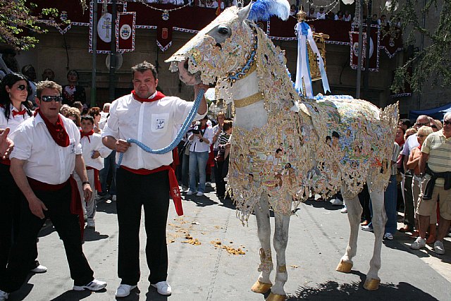 Desde primera hora de la mañana Caravaca de la Cruz ha vivido hoy su día grande con los Caballos del Vino. Alrededor de 200.000 personas se han dado cita para admirar a los caballos enjaezados con deslumbrantes mantos bordados en seda y oro. La multitud ha aplaudido el paso de los corceles acompañados por miles de caballistas vestidos de blanco impoluto, con fajín y pañuelo rojo al cuello. El tiempo ha respetado el desarrollo de la fiesta y los caravaqueños han desbordado alegría en uno de los días más importantes para los caballistas.