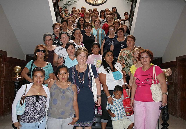 La concejala de Mujer en el Ayuntamiento de Caravaca, Carmen Ruiz, junto a personal de su concejalía y un numeroso grupo de mujeres caravaqueñas, les ha dado la bienvenida en el Salón de Plenos.