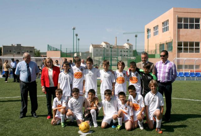 La consejera de Presidencia y Administraciones Públicas, María Pedro Reverte, y el alcalde de Caravaca, Domingo Aranda, inauguraron hoy la primera pista de fútbol 7 del municipio, ubicada junto al Complejo Deportivo El Salvador, y de la que ya pueden disfrutar los aficionados del municipio.