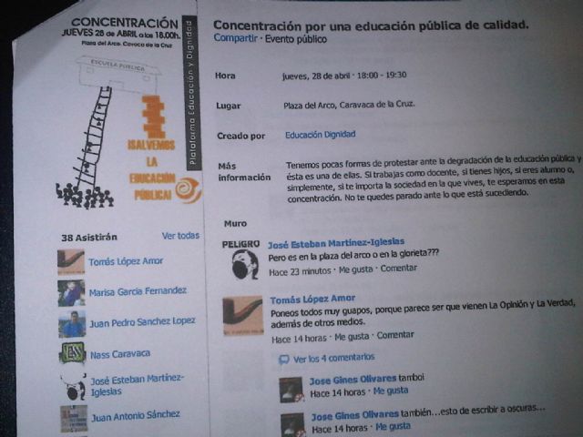 Es por ello que puntualizamos de nuevo nuestra postura de considerar un grave error y una falta de respeto al propio pueblo de Caravaca, el acto convocado para protestar contra las medidas en materia de educación del Gobierno de la Región de Murcia coincidiendo con un acto tan importante del programa oficial de Fiestas como es el Pregón.