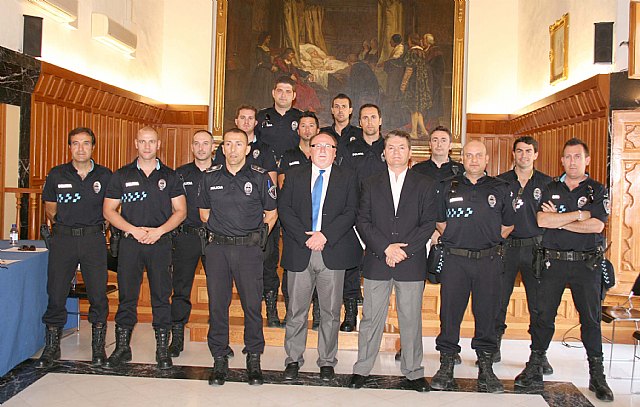 En la fotografía, aparecen los agentes pertenecientes a la unidad de Seguridad Ciudadana, junto al concejal responsable del área, Juan Francisco Jiménez Puerta, y el jefe de la Policía Local de Caravaca de la Cruz, Jesús Fernández Bolaños, durante el acto de clausura de uno de los cursos impartidos.