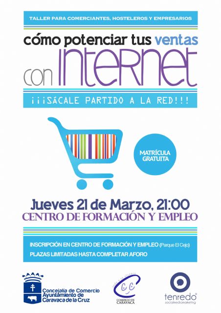 El taller, que tiene como principal objetivo potenciar el comercio electrónico, estará impartido por la empresa local Tenredo, en el marco del convenio de colaboración suscrito con el Ayuntamiento de Caravaca. Se impartirá el jueves 21 de marzo a partir de las 20.30 horas en las dependencias del Centro Municipal de Empleo, Formación e Igualdad.