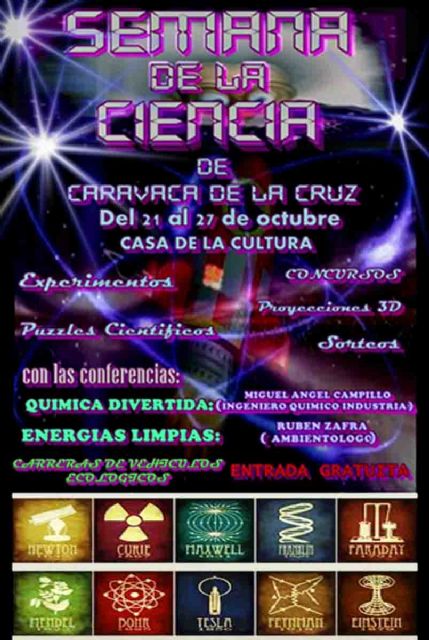El Ayuntamiento de Caravaca de la Cruz, a través de sus concejalías de Cultura y Educación, ha promovido la celebración de la Semana de la Ciencia, dirigida a los escolares del municipio y también al público en general. Las actividades se desarrollarán a lo largo de la próxima semana (del 21 al 27 de octubre) en la Casa de la Cultura Emilio Sáez. La participación es gratuita.