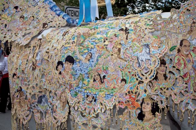 Un stand muestra los bordados de los Caballos del Vino y trajes de Moros y Cristianos