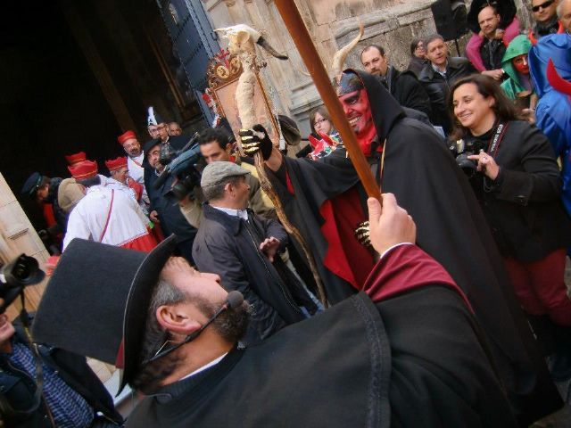 Durante toda la jornada, el cortejo recorrerá la ciudad, junto con músicos, alguaciles, obispillos y demonios, multando a todo el que se cruce a su camino.