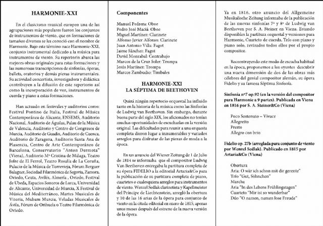 Con el objetivo de apoyar a la fundación Proyecto Hombre, el Ayuntamiento de Caravaca de la Cruz celebra este domingo, 23 de febrero, a las 19.30 horas un concierto de música clásica a cargo de la formación "Harmonie XXI".
