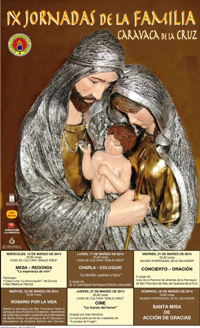 La clausura de las IX Jornadas de la Familia tendrá lugar el domingo 30 de marzo, en la iglesia parroquial de El Salvador, con la celebración de la Eucaristía, a las 19:00 horas.