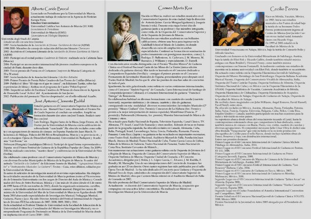 Paralelamente a los conciertos, se impartirán en el Conservatorio clases magistrales a cargo de los docentes Carmen María Ros y Cecilo Perera. ADJUNTAMOS BIOGRAFÍAS DE LOS MÚSICOS.