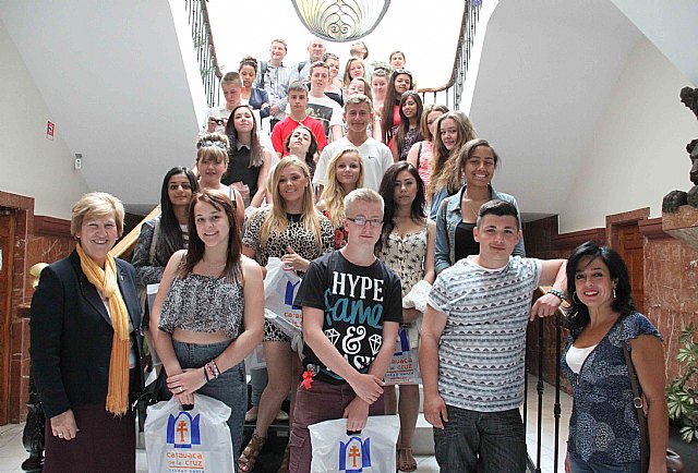 La concejal de Educación y Promoción Social en el Ayuntamiento de Caravaca de la Cruz, Carmen Ruiz Mulero, ha recibido hoy en el Salón de Plenos del Consistorio a un grupo alumnos ingleses que está participando en un encuentro con el instituto San Juan de la Cruz.