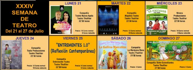 El fin de semana estará especialmente dedicado al público infantil con la representación, el sábado 26 de julio, de la obra "La gallina Marcelina", a cargo de la compañía La Mariposa Rosa. El domingo, 27 de julio, "El ratoncito Pérez se enamora", de la compañía Siete Comediantes, cerrará la XXXIV Semana de Teatro de Caravaca.