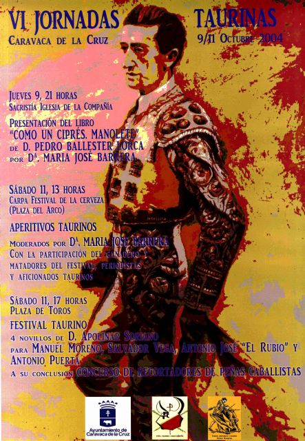 Por otra parte, antes de la celebranción de dicho festival, tendrán lugar las VI Jornadas Taurinas, moderadas por María José Barrera. El jueves, 9 de octubre, a las 21.00 horas en la antigua iglesia de la Compañía de Jesús se presentará el libro "Como un ciprés, Manolete", de Pedro Ballester Lorca, y el sábado, 11 de octubre, a las 13.00 horas se celebrarán "Los Aperitivos Taurinos" en la carpa que se instalará en Gran Vía, con la participación de los toreros y novilleros que forman parte del cartel del festival, ganaderos, prensa taurina y aficionados.
