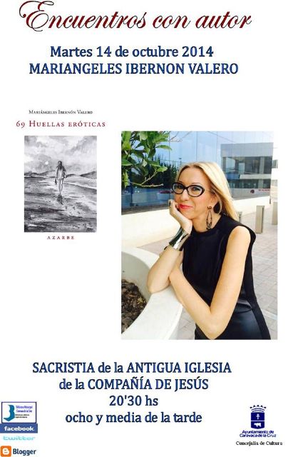 Por otra parte, la Concejalía de Cultura comienza este mes de octubre con los encuentros con autor que se programan mensualmente en colaboración con escritores de la Región de Murcia. La escritora ceheginera Mariangeles Ibernón Valero será la encargada de iniciar el nuevo ciclo de encuentros el próximo 14 de octubre a las 20.30 horas, en la sacristía de la antigua iglesia de la Compañía de Jesús.