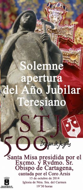 El próximo miércoles, 15 de octubre, a las 19.30 horas en la iglesia del convento de Nuestra Señora del Carmen se procederá a la Solemne Apertura del Año Jubilar Teresiano con una Santa Misa, que estará presidida por el obispo de la Diócesis de Cartagena, José Manuel Lorca Planes, y cantada por los componentes del coro "Arsis". Previamente, todas las iglesias de Caravaca realizarán un repique de campanas para anunciar esta celebración.