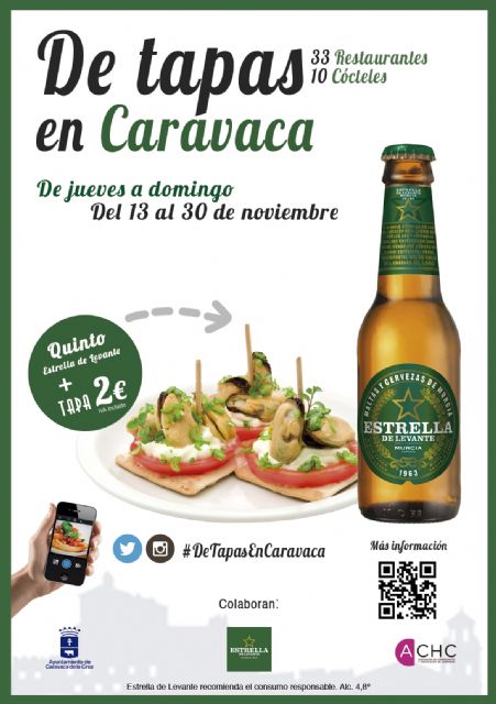 Un total de 43 establecimientos hosteleros participan a partir de este jueves en el evento "De tapas en Caravaca", que organiza conjuntamente el Ayuntamiento de Caravaca de la Cruz, la Asociación de Comerciantes y Hosteleros de Caravaca y la empresa murciana Estrella Levante.