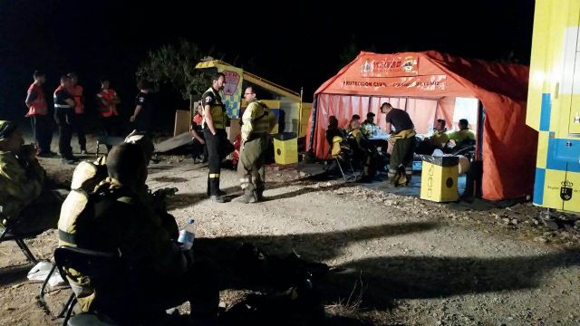 El coordinador de Protección Civil en Caravaca y secretario del SEN, Alfonso Martínez, ha informado que hasta la pedanía lorquina se desplazaron dos vehículos de primera intervención, dotados de cubas de agua; una ambulancia con personal sanitario, así como tres vehículos furgoneta y todoterreno para el desplazamiento del personal voluntario. Protección Civil Caravaca también instaló un comedor portátil, donde durante toda la madrugada de hoy se han servido botellas de agua y alimento entre los efectivos y militares encargados de sofocar el incendio.