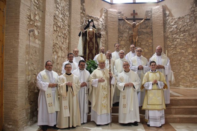 “Santa Teresa es una mujer excepcional, una religiosa que irradia en torno a sí la llama de la vitalidad humana y de su dinámica espiritual”. Así comenzó el Obispo de Cartagena ayer su homilía en la clausura diocesana del Año Jubilar Teresiano celebrado con motivo del V Centenario del Nacimiento de Santa Teresa de Jesús. La celebración, que tuvo lugar en la iglesia conventual de Nuestra Señora del Carmen de los Padres Carmelitas Descalzos de Caravaca, contó con la presencia del vicario de zona, así como de los párrocos y sacerdotes hijos del pueblo, que concelebraron junto a los Carmelitas.