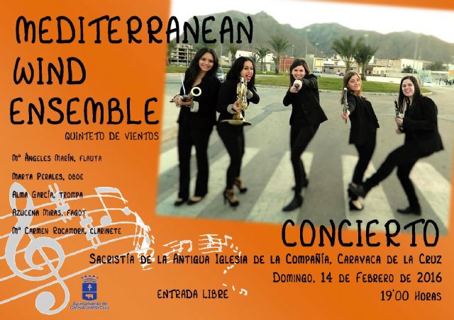 El quinteto de viento 'Mediterranean Wind Ensemble' ofrece un concierto este domingo, 14 de febrero, a las 19.00 horas, en la sacristía de la antigua Compañía de Jesús, de entrada libre. Las jóvenes de la Región de Murcia y Alicante que forman parte de este grupo interpretarán obras de Ravel, Ibert y Ligeti.