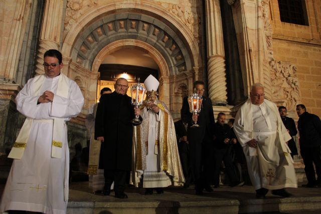 En la tarde de ayer lunes, el Obispo de Cartagena, Mons. José Manuel Lorca Planes, presidió la celebración de la Eucaristía en la Basílica Menor-Santuario de la Vera Cruz, en el día en el que la Iglesia celebraba la Cátedra de San Pedro, una solemnidad que se remonta al siglo cuarto y con la que se rinde homenaje y se celebra el primado de Pedro y sus sucesores. Mons. Lorca ensalzó la figura de San Juan Pablo II como “aquel que rompió todos los protocolos y se acercó de una forma especial a los jóvenes”.