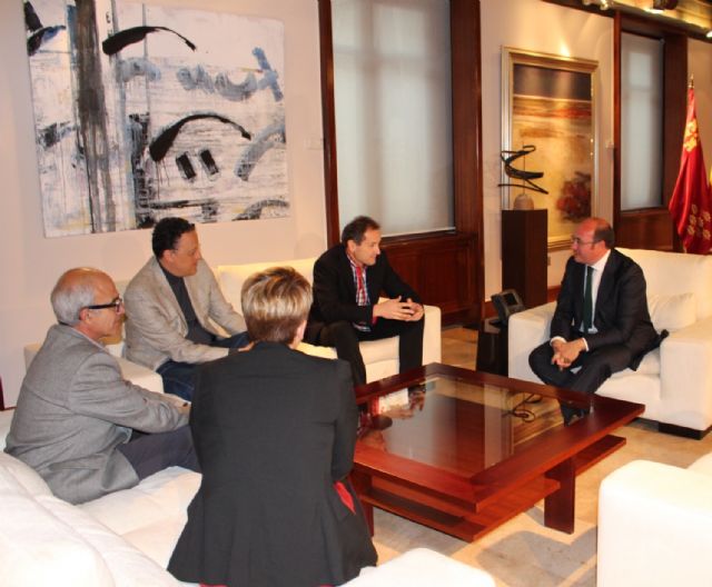 El presidente de la Comunidad, Pedro Antonio Sánchez, recibió hoy en el Palacio de San Esteban al escritor caravaqueño Luis Leante, ganador del Premio Edebé Juvenil 2016 con su novela ‘Huye sin mirar atrás’, enfocada a los lectores adolescentes.