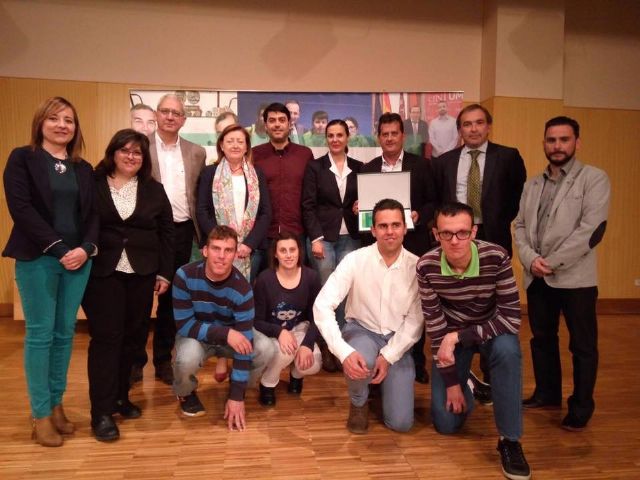 La concejal de Servicios Sociales en el Ayuntamiento de Caravaca de la Cruz, María José Soria, junto a responsables del Apcom y un grupo de usuarios del Centro de Día de Mayrena, acudió a la entrega de los Premios Laurel, que otorga la federación de personas con discapacidad intelectual Plena inclusión Región de Murcia.