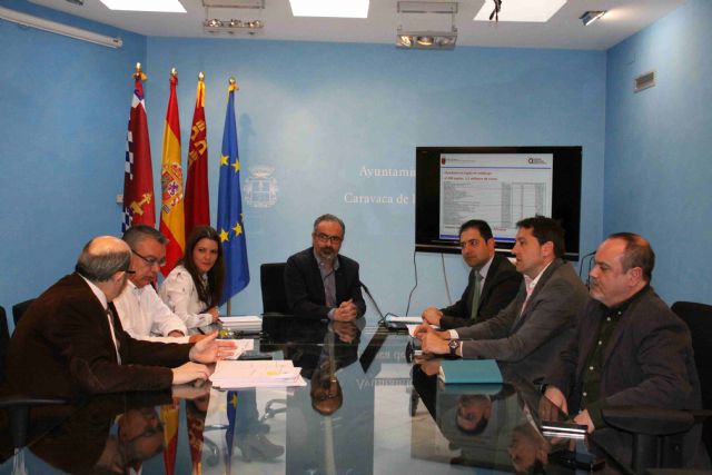 El alcalde de Caravaca de la Cruz, José Moreno, acompañado de la concejal de Hacienda, Julia Giménez, así como del interventor y el secretario municipal, ha mantenido una reunión con el director de la Agencia Tributaria de la Región de Murcia, Isaac Sanz, y personal de la Consejería de Hacienda y Administración Pública.