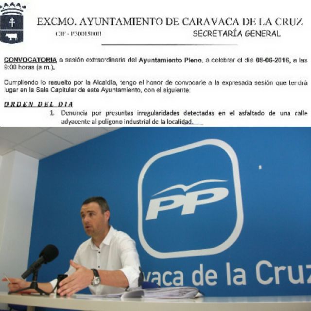 El portavoz del Grupo Popular en el Ayuntamiento de Caravaca, José Francisco García, ha lamentado "la falta de transparencia y la opacidad del equipo de Gobierno" al convocar el Pleno extraordinario solicitado por el PP para abordar el asunto de la denuncia de la calle del polígono de Cavila un día laborable, el miércoles 8 de junio, a las 09:00 horas. "Esto en la segunda solicitud, porque la primera petición de Pleno extraordinario nos fue denegada", ha añadido.