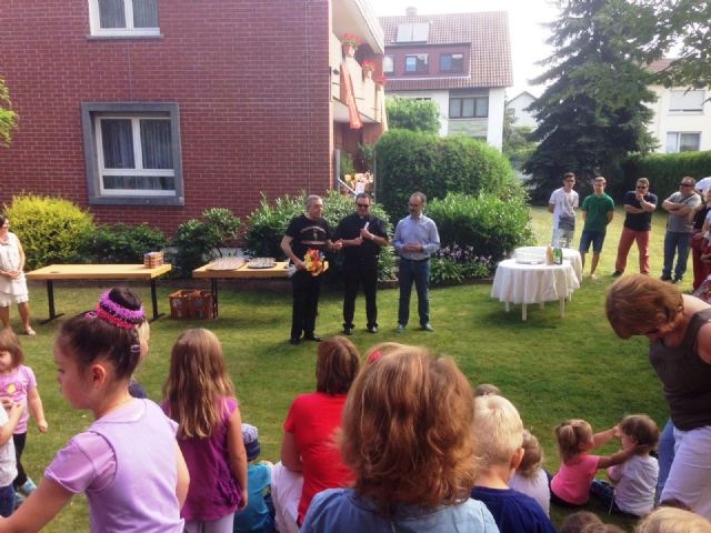 Hasta la ciudad de Obertshausen también se ha desplazado el vicario Jesús Aguilar, quien entregó al padre Hofmann una casulla bordada con la Cruz de Caravaca, que éste visitó durante la ceremonia religiosa previa a la inauguración del monumento. José Moreno, por su parte, le obsequió, en nombre de la ciudad, con un cuadro de plata con un grabado del Castillo.
