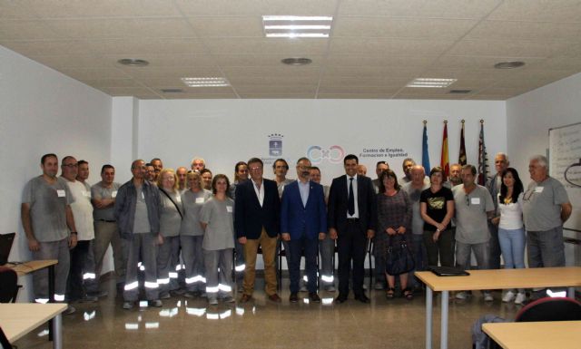 El alcalde y el director del SEF han visitado el Centro de Empleo, donde se desarrolla un taller de albañilería para la creación de un espacio de formación del sector del calzado