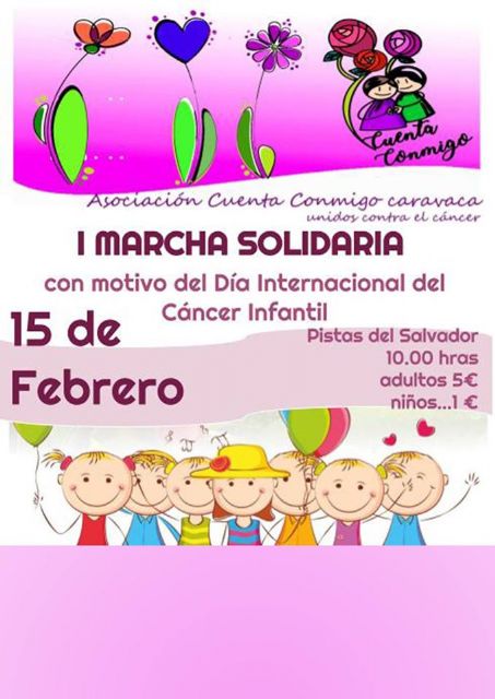 Más de 2.000 escolares de todos los centros educativos del municipio participan este miércoles, 15 de febrero, en la I Marcha Solidaria con motivo del Día Internacional del Cáncer Infantil, organizada por la asociación ‘Cuenta conmigo Caravaca’, con la colaboración del Ayuntamiento de Caravaca y distintas empresas patrocinadoras.