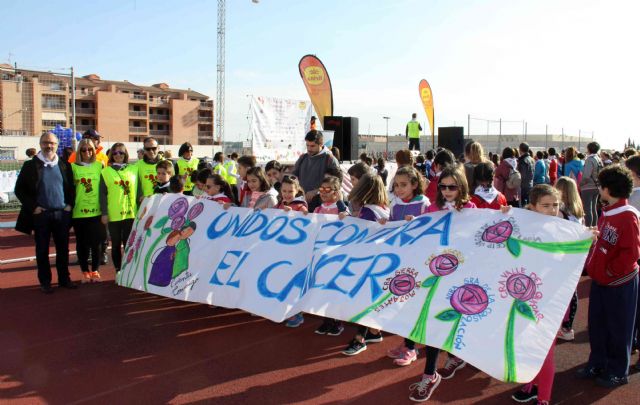 El alcalde, José Moreno; la presidenta de dicha asociación, María Encarna Lag, y los concejales de Educación y Deportes, Esther Poveda y Antonio Donate, respectivamente, han dado la bienvenida a todos los participantes, agradeciendo la gran acogida que ha tenido la primera edición de esta marcha, con la que se recaudan fondos para lucha contra el cáncer y se conciencia sobre esta enfermedad.
