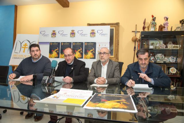 El programa de actividades, que comienza este jueves, 23 de febrero, con una exposición dedicada al concurso de 'Caballo a Pelo', fue presentado por el concejal de Festejos en el Ayuntamiento de Caravaca de la Cruz, Óscar García, y el presidente del Bando de los Caballos del Vino, Juan Damián Martínez; acompañados por el vicepresidente, Antonio García, y el secretario de Comisión de Festejos, Emilio Martínez.