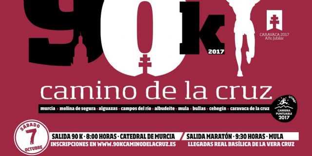 La Federación de Atletismo de la Región de Murcia, en colaboración con la Asociación de Senderismo Solidario de la Región de Murcia, el Consorcio de las Vías Verdes de la Región de Murcia, la Fundación Camino de la Cruz y los ayuntamientos de Murcia, Molina de Segura, Alguazas, Campos del Río, Albudeite, Mula, Bullas, Cehegín y Caravaca de la Cruz organizan la carrera, marcha senderista y nordic walking de 90K Camino de la Cruz 2017.