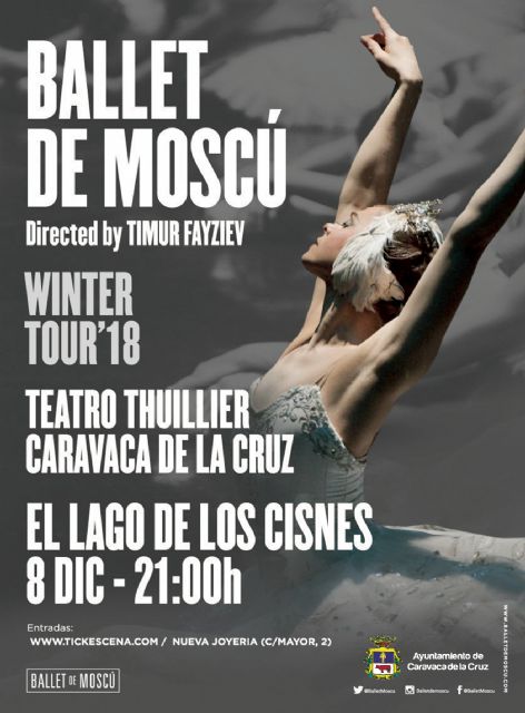 El Ballet de Moscú de Timur Fayziev llega al teatro Thuillier de Caravaca de la Cruz para interpretar la obra por excelencia de la danza clásica; 'El lago de los cisnes'. La representación tendrá lugar el próximo sábado, 8 de diciembre, a las 21.00 horas, y las localidades están a la venta de forma anticipada en https://tickescena.com/Evento.aspx?id=56 y en Nueva Joyería (calle Mayor, Caravaca).