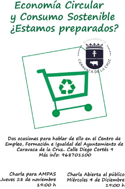 El Ayuntamiento de Caravaca de la Cruz, a través de sus concejalías de Comercio y Medio Ambiente, organiza un ciclo de conferencias para difundir la importancia de la denominada "Economía Circular' y el papel destacado que debería jugar en el modelo de consumo actual.