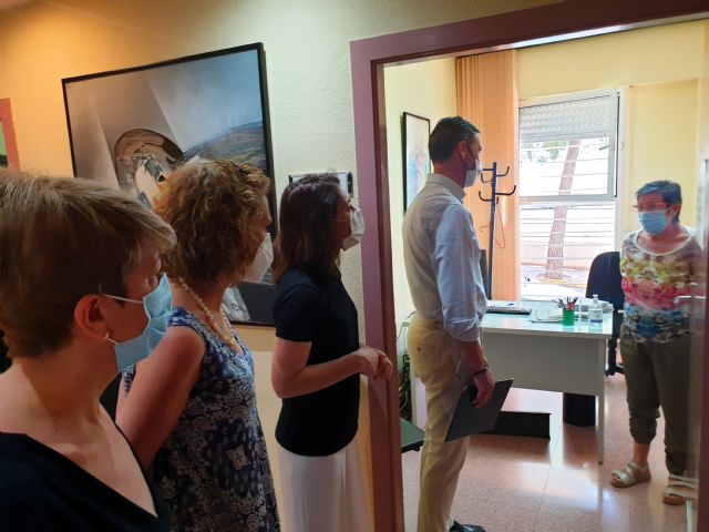 José Francisco García recorrió las dependencias donde desarrollan su labor los trabajadores sociales, acompañado por la concejal responsable del área en el Consistorio, Isabel López, así como por la edil de Sanidad, Mónica Sánchez, y guiados por la directora del centro público, Francisca Meca.