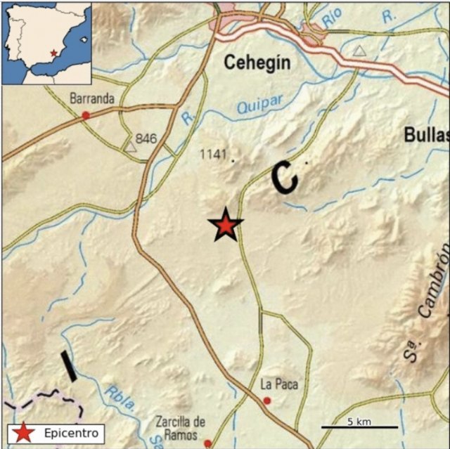 El Instituto Geográfico Nacional ha confirmado el terremoto, que ha tenido lugar a las 01.46 horas, con epicentro al sur de Caravaca de la Cruz, de magnitud de 3.9, profundidad de 4 Km y una intensidad de IV.