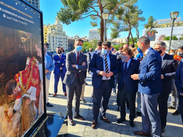 Previamente, el alcalde caravaqueño ha realizado un recorrido guiado por los paneles que componen la exposición fotográfica, en el que ha explicado al alcalde de la villa y al presidente de la Comunidad Autónoma de la Región de Murcia y al director de La Verdad, Alberto Aguirre, así como a todos los asistentes, el significado y los sentimientos que le evocan cada una de las instantáneas seleccionadas de las Fiestas de Moros, Cristianos y Caballos del Vino, declaradas de Interés Turístico Internacional.