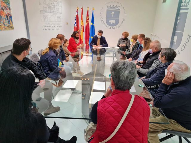 El alcalde, José Francisco García, mantenía la pasada semana una reunión con un grupo de representantes de la comunidad ucraniana residente en el municipio para trasladarles el apoyo del pueblo caravaqueño ante la dura e injusta situación de violencia que está sufriendo su país como consecuencia de la guerra declarada por Rusia. Asimismo, este encuentro sirvió para conocer las necesidades de primera mano y establecer las vías de cooperación y colaboración necesarias con los miles ciudadanos que se están viendo directamente afectados por los ataques bélicos en el marco de la campaña 'Caravaca con Ucrania'.