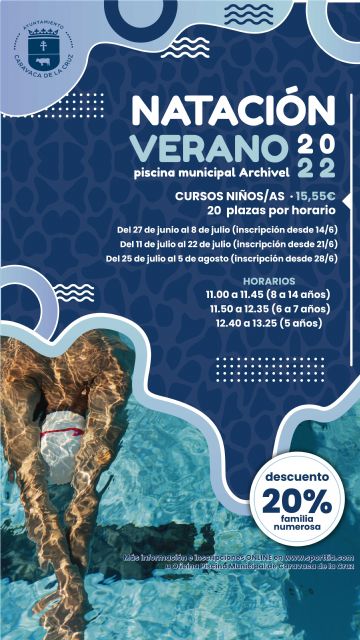 07/06/2022. El Ayuntamiento de Caravaca, a través de su Concejalía de Deportes, ha puesto en marcha la campaña municipal ‘Aprende a nadar. Verano 2022’ con cursos de iniciación al medio acuático y perfeccionamiento, que se impartirán en las piscinas municipales de Caravaca y Archivel, así como en las instalaciones concertadas de Barranda, La Encarnación y Singla.