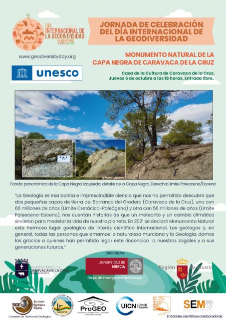 18:00 horas. Presentación del 'Día Internacional de la Geodiversidad 'y del Monumento Natural de la Capa Negra de Caravaca de la Cruz.