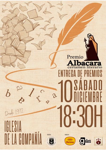 09/12/2022. La antigua iglesia de la Compañía de Jesús alberga mañana, sábado 10 de diciembre, a las 18.30 horas, la entrega de los Premios Albacara, el certamen literario que con carácter anual es convocado por el Ayuntamiento de Caravaca de la Cruz en colaboración con los Padres Carmelitas, el grupo Postres Reina y la editorial Gollarín.