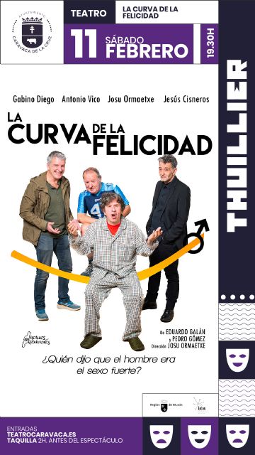 07/01/2023. Gabino Diego, Antonio Vico, Jesús Cisneros y Josu Ormaetxe estarán el próximo sábado, 11 de febrero, en Caravaca de la Cruz para representar 'La curva de la felicidad'. Esta divertida propuesta, que llega de la mano de consagrados actores el panorama nacional, forma parte de la programación de la Concejalía de Cultura del Consistorio caravaqueño, dentro del Circuito de Artes Escénicas de la Región de Murcia.