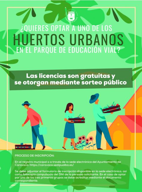 Las personas interesadas pueden presentar la solicitud desde hoy, 15 de febrero, hasta el 7 de marzo en el Registro General del Ayuntamiento o través de la sede electrónica, donde también se encuentran publicadas las bases que regulan esta convocatoria de concesión de los huertos mediante sorteo público (https://caravaca.sedipualba.es/).